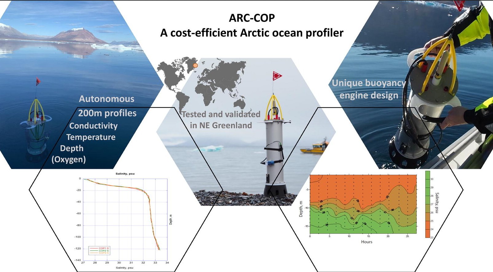 The rapid warming of our planet has resulted in accelerated melting of ice in polar regions. Currently we have limited knowledge on how, where and when the surface meltwater layer is mixed with the underlying ocean due to lack of observations in these remote areas. We present a lightweight (17 kg) and low-cost (6000€) instrument for autonomous profiling across the strongly stratified upper layer in Arctic coastal waters, freshened by the riverine input and meltwater from glaciers, icebergs, and sea ice. The profiler uses a specially designed plunger buoyancy engine to displace up to 700 cm3 of water and allows for autonomous dives to 200 m depth. It can carry different sensor packages and convey its location by satellite communication. Two modes are available: (a) a free-floating mode and (b) a moored mode, where the instrument is anchored to the seafloor. In both modes, the profiler controls its velocity of 12 ± 0.3 cm/s resulting in 510 ± 22 data points per 100 m depth. Equipped with several sensors, e.g. conductivity, temperature, oxygen, and pressure, the autonomous profiler was successfully tested in a remote Northeast Greenlandic fjord. Data has been compared to traditional CTD instrument casts performed nearby.
