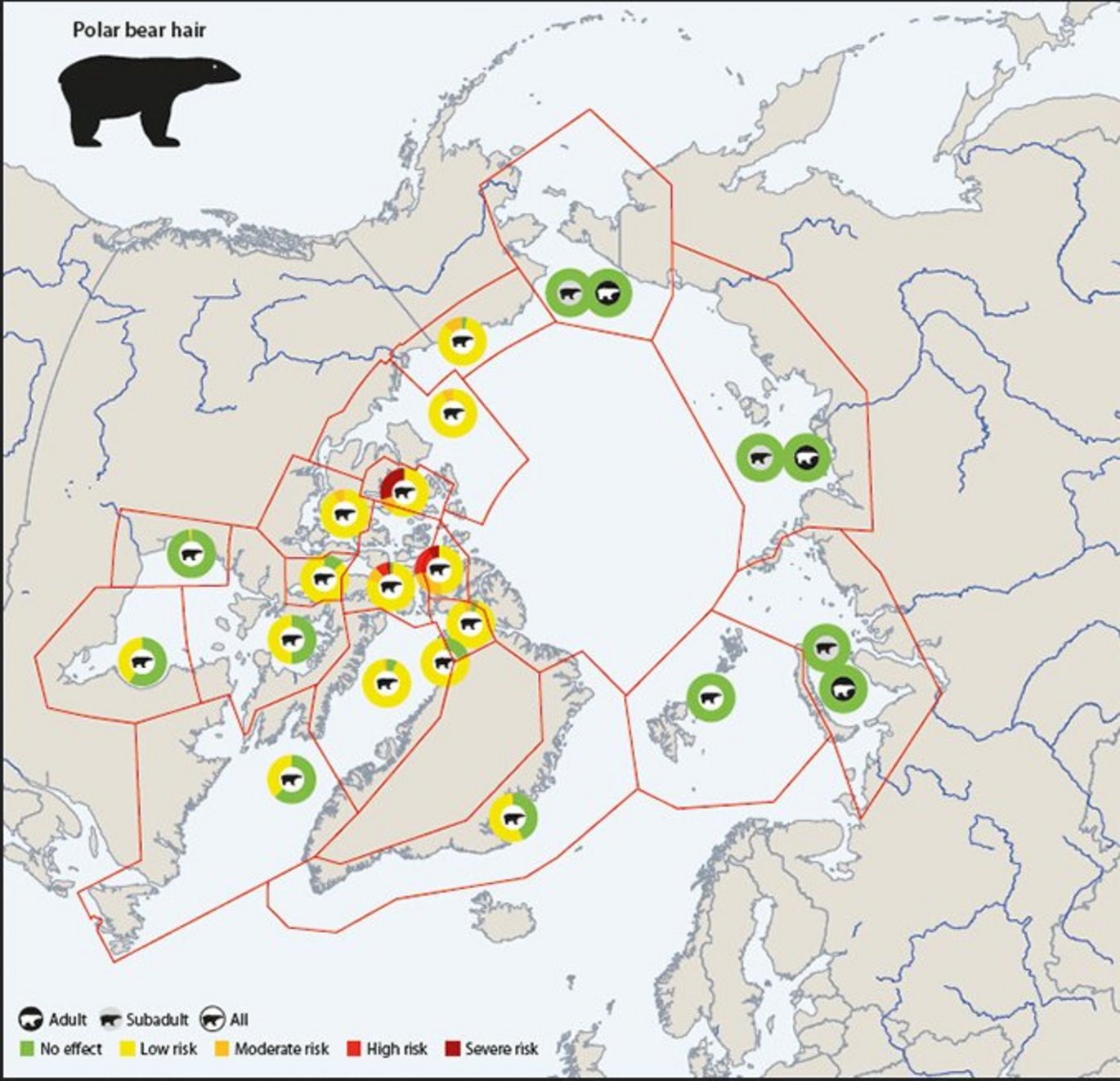 There has been a considerable number of reports on Hg concentrations in Arctic mammals since the last Arctic Monitoring and Assessment Programme (AMAP) effort to review biological effects of the exposure to mercury (Hg) in Arctic biota in 2010 and 2018. Here, we provide an update on the state of the knowledge of health risk associated with Hg concentrations in Arctic marine and terrestrial mammal species. Using available population-specific data post-2000, our ultimate goal is to provide an updated evidence-based estimate of the risk for adverse health effects from Hg exposure in Arctic mammal species at the individual and population level. Tissue residues of Hg in 13 species across the Arctic were classified into five risk categories (from No risk to Severe risk) based on critical tissue concentrations derived from experimental studies on harp seals and mink. Exposure to Hg lead to low or no risk for health effects in most populations of marine and terrestrial mammals, however, subpopulations of polar bears, pilot whales, narwhals, beluga and hooded seals are highly exposed in geographic hotspots raising concern for Hg-induced toxicological effects. About 6% of a total of 3500 individuals, across different marine mammal species, age groups and regions, are at high or severe risk of health effects from Hg exposure. The corresponding figure for the 12 terrestrial species, regions and age groups was as low as 0.3% of a total of 731 individuals analyzed for their Hg loads. Temporal analyses indicated that the proportion of polar bears at low or moderate risk has increased in East/West Greenland and Western Hudson Bay, respectively. However, there remain numerous knowledge gaps to improve risk assessments of Hg exposure in Arctic mammalian species, including the establishment of improved concentration thresholds and upscaling to the assessment of population-level effects.