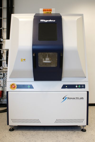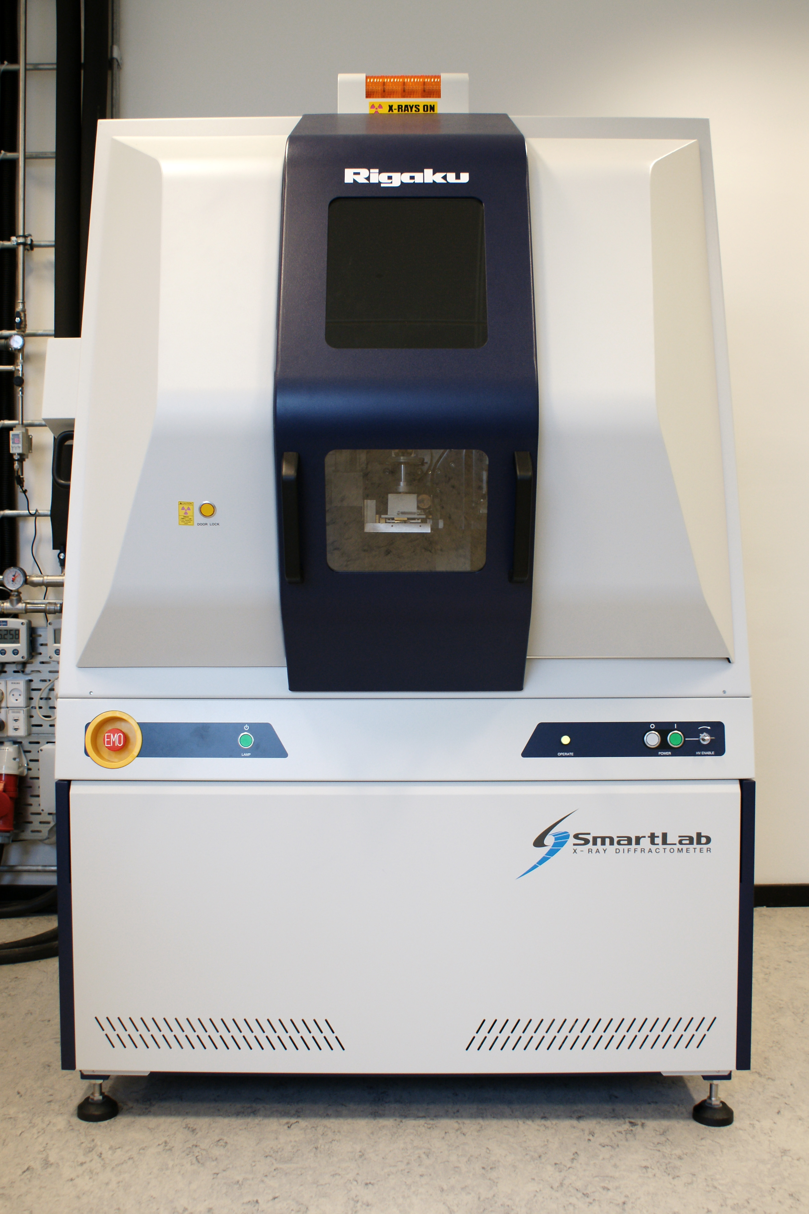 The SmartLab, delivered by Rigaku (Japan) is a state-of-the art instrument capable of (1) measuring crystal structures, roughness, reflectivity, pole figures, etc. in thin-film crystals, (2) do high-resolution Powder X-ray diffraction in different sample geometries, (3) area-resolved structure analysis and (4) perform Small-Angle X-ray Scattering measurements on nanoparticles.