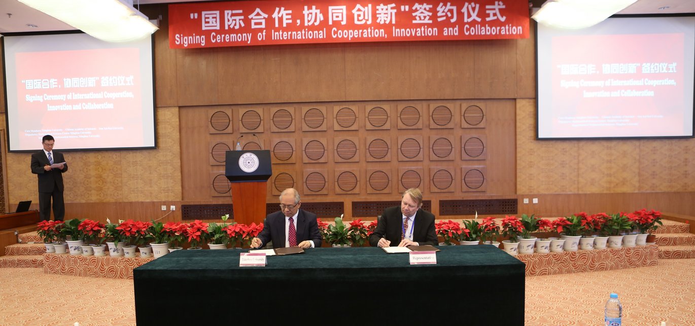 At an official ceremony in China the Director of Center for Quantum Geometry of Moduli Spaces (QGM), Jørgen Ellegaard Andersen signed a collaborative agreement together with Professor Shing-Tung Yau the Director of the Mathematical Sciences Center at Tsinghua University, Beijing, China.