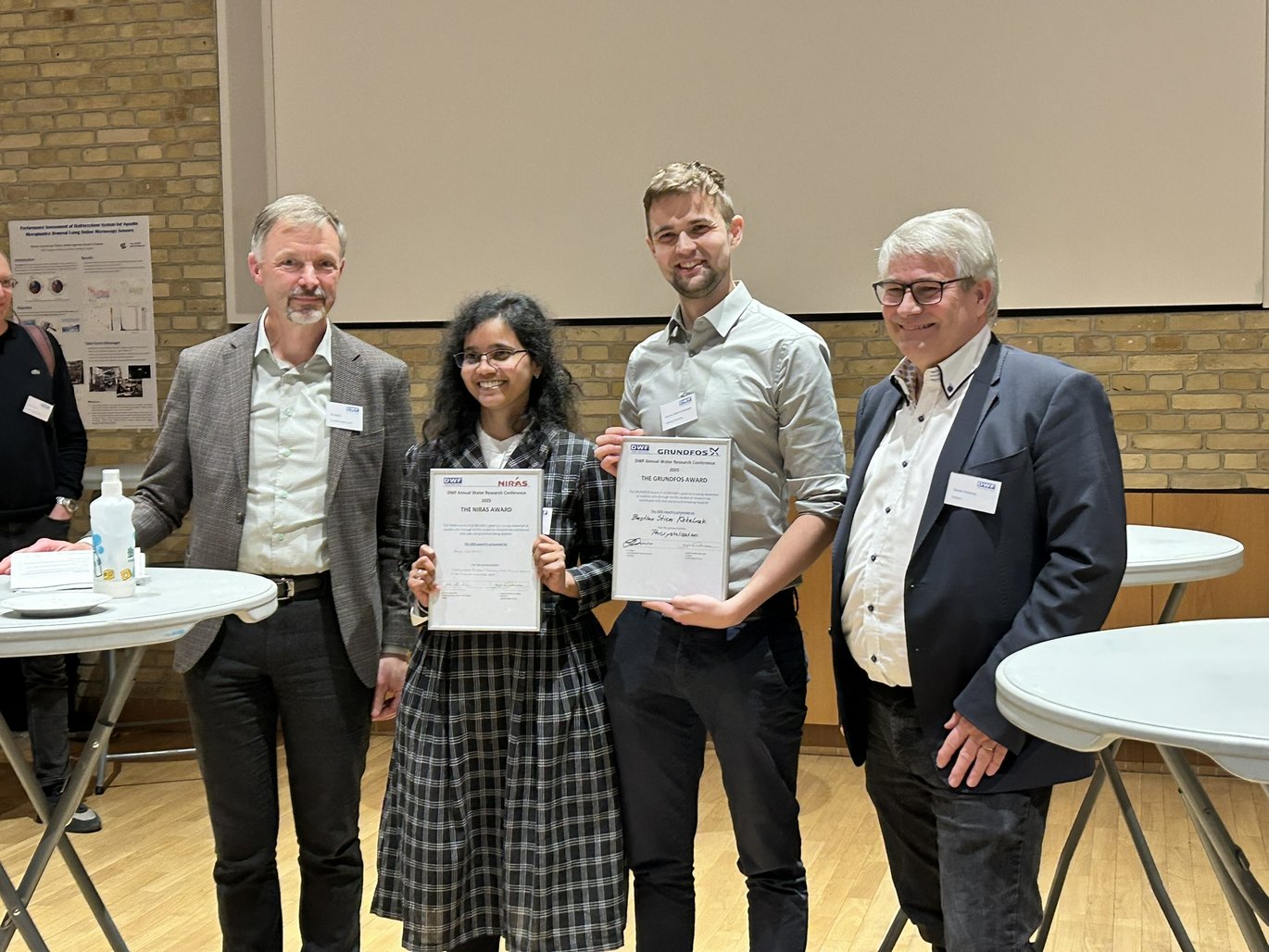WATEC was hosting this year’s annual Danish Water Forum conference 30th January with participants from Danish universities, knowledge institutions, companies and water utilities. It was a pleasure to meet water researchers and water professionals presenting their research results and innovative developments. WATEC researchers were also participating and contributing with new water insights. More than 120 participants visited Stakladen and took part in research dissemination and discussions. Awards this year were given to Post Doc. Ramya Veerubhotla from Department of Biology (WATEC, Aarhus University) with the title “Pioneering Waste-Powered Batteries, Green transition, and Clean Water”. The NIRAS award was given by Søren Hvilshøj. The other award from Grundfos was given to PhD student Bastian Stiem Kirkebæk from Department of Chemistry and Bioscience (Ålborg University). The GRUNDFOS award was given by Bo Højris. Apart from scientific sessions there was also presentation of the Allwaters consortium aiming for the large Knowledge and Innovation Community on Water Marine and Maritime Sector and Ecosystems. The Allwaters consortium now embrace 80+ partners all over Europe from industry, utilities, research, education, innovation clusters and public institutions. The session was facilitated by Water Valley Denmark. Finally, also Professor Nikolai Friberg presented a new center housed in the WATEC department Ecoscience with the focus on Nature Based Solutions. The activities in the center will also be part of the WATER KIC and ensure clean water, human health, and biodiversity in the natural environments.