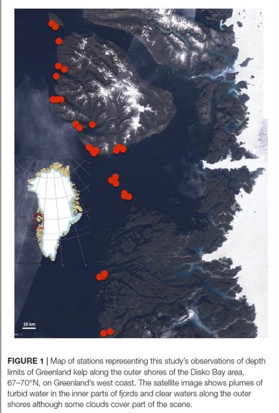 Deep Penetration of Kelps Offshore Along the West Coast of Greenland