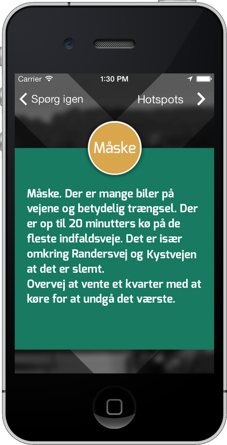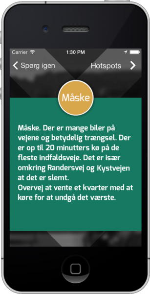 Drive Now? (Skal jeg køre nu?) was presented on 5th February 2014 at a reception at the Aarhus City Hall, and has been well-received by the Danish media, including Jyllands-Posten, TV2 Østjylland, and Ingeniøren. And with 2250 downloads the first day, it seems like the public are also interested, and hoping the app may answer the significant traffic problem in Aarhus.