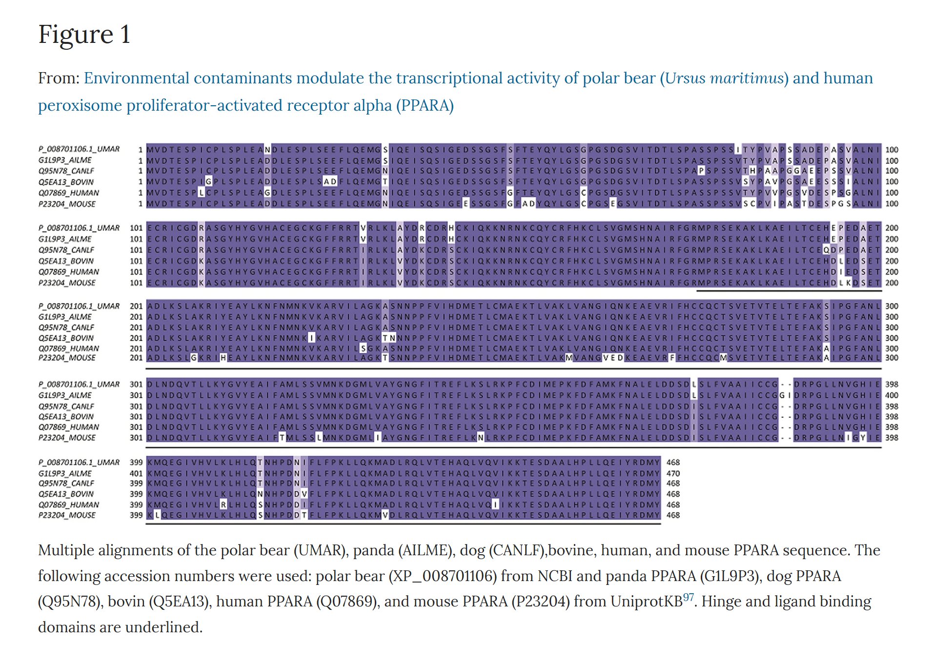 Environmental contaminants modulate the transcriptional activity of polar bear (Ursus maritimus) and human peroxisome proliferator-activated receptor alpha (PPARA)