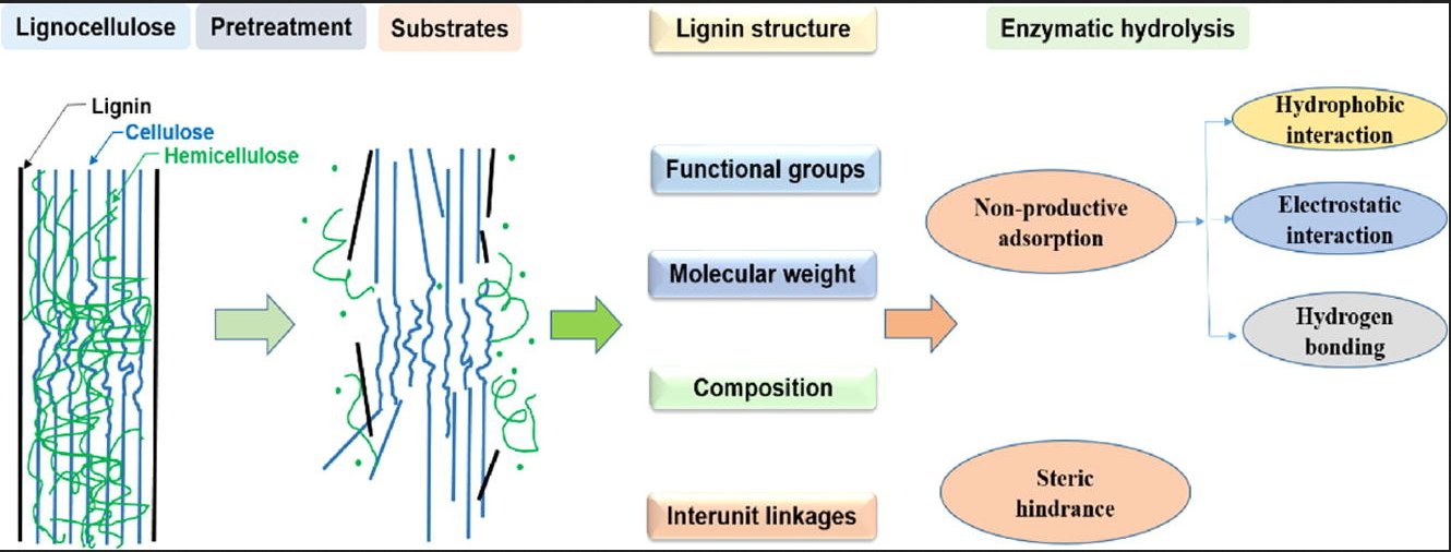 Enzymatic conversion of pretreated lignocellulosic biomass: A review on influence of structural changes of lignin