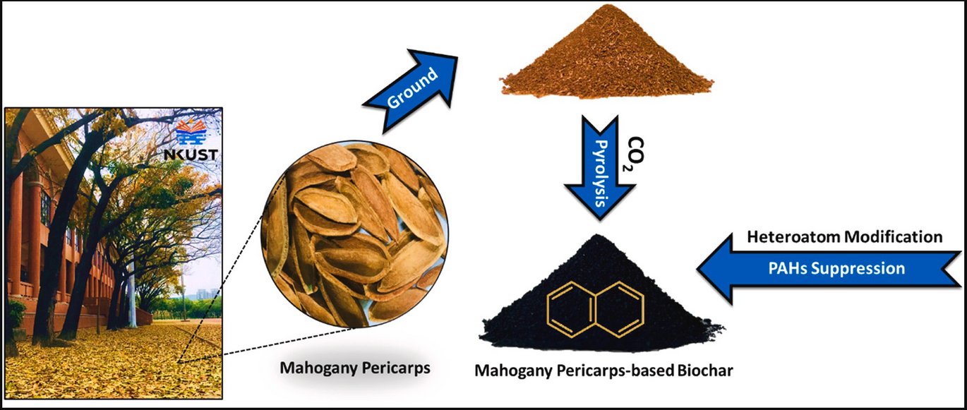 Facile heteroatoms modification biochar production from mahogany (Swietenia macrophylla King) pericarps for enhanced the suppression of polycyclic aromatic hydrocarbon pollutants
