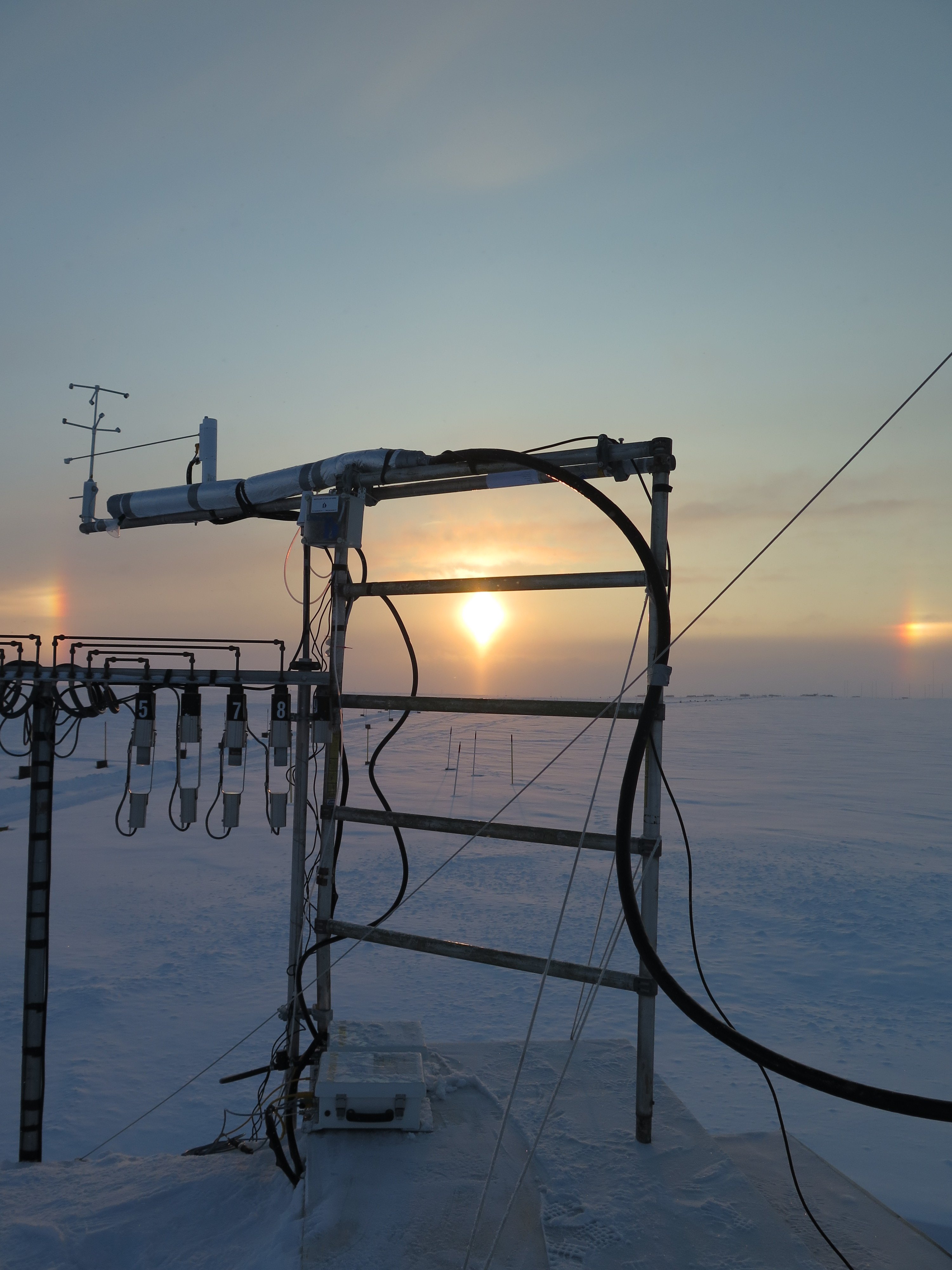 Measurements of gaseous elemental mercury (GEM) fluxes over snow surfaces using a relaxed eddy accumulation (REA) system are carried out at the High Arctic site at the Villum Research Station, Station Nord, in North Greenland. Simultaneously, CO2 fluxes are determined using the eddy covariance (EC) technique. The REA system with dual inlets and dual analyzers is used to measure fluxes directly over the snow. The measurements were carried out from 23 April to 12 May during spring 2016, where atmospheric mercury depletion events (AMDEs) took place. The measurements showed a net emission of 8.9 ng m−2 min−1, with only a few minor episodes of net depositional fluxes, from a maximum deposition of 8.1 ng m−2 min−1 to a maximum emission of 179.2 ng m−2 min−1. The data support the theory that gaseous oxidized mercury (GOM) is deposited during AMDEs followed by formation of GEM on surface snow and is re-emitted as GEM shortly after the AMDEs. Furthermore, observation of the relation between GEM fluxes and atmospheric temperature suggests that GEM emission partly could be affected by surface heating. However, it is also clear that the GEM emissions are affected by many parameters.