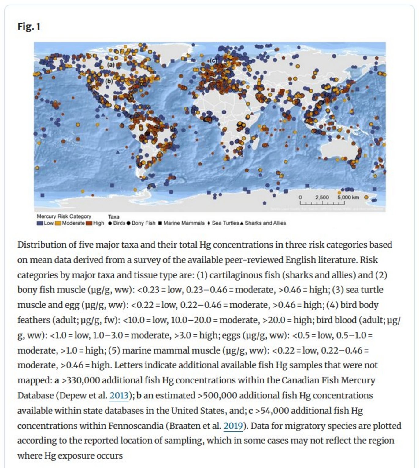An important provision of the Minamata Convention on Mercury is to monitor and evaluate the effectiveness of the adopted measures and its implementation. Here, we describe for the first time currently available biotic mercury (Hg) data on a global scale to improve the understanding of global efforts to reduce the impact of Hg pollution on people and the environment.