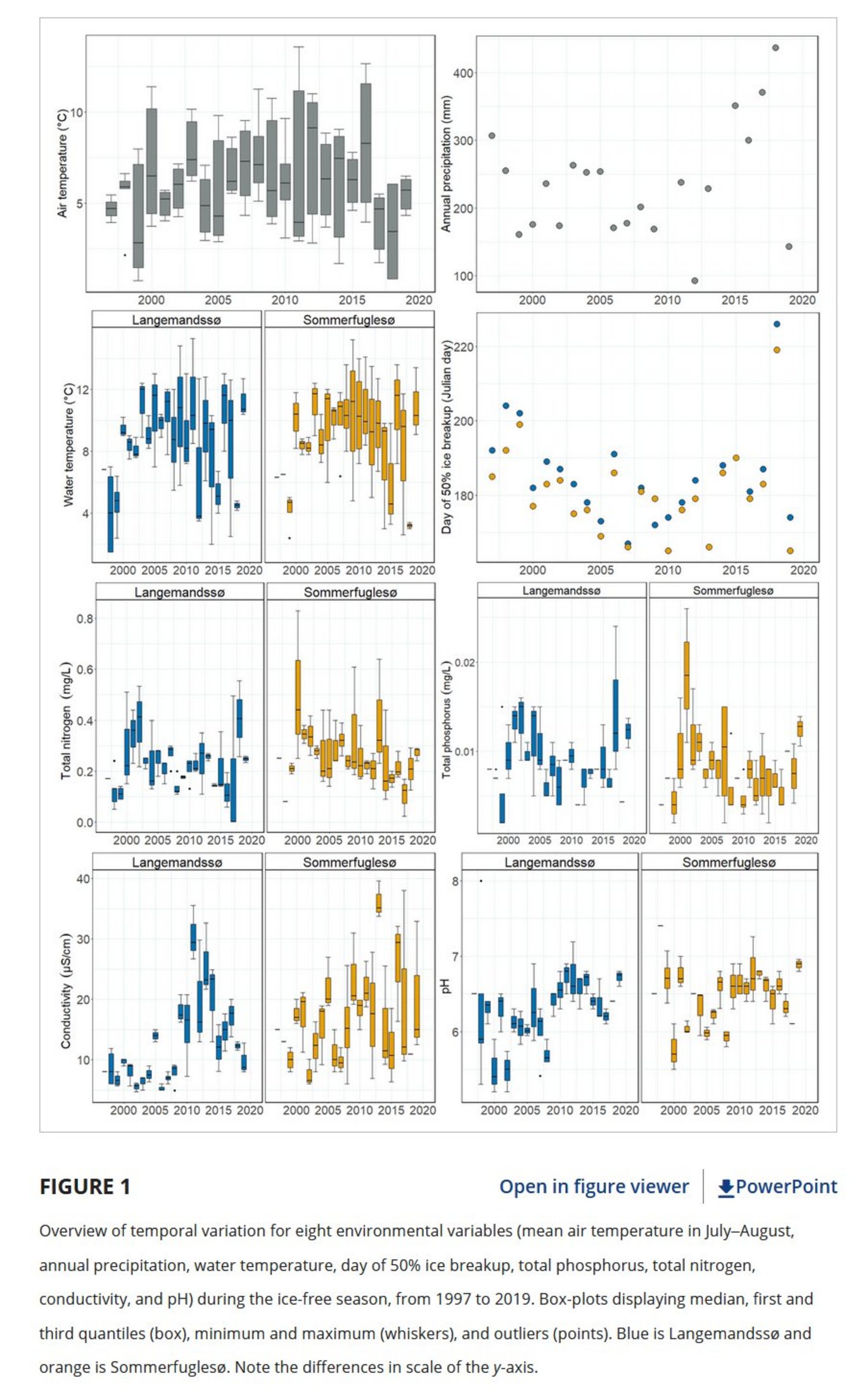 Abstract Primary producers form the base of lake ecosystems and, due to their often short lifecycles, respond rapidly to changing conditions. As the Arctic is warming nearly four times faster than the global average, we see major shifts in environmental conditions, which impacts lake ecosystem functioning. Previous studies have found a general increase in primary productivity due to climate warming. However, few long-term studies have included changes in phytoplankton community composition and biomass in relation to warming in Arctic lakes and it therefore remains unclear how different algal taxa and thus the community respond. We investigated how climate warming affects phytoplankton community composition, taxon richness and biomass in High Arctic lakes, using a unique 23-year data series on phytoplankton in two shallow lakes at Zackenberg, north-east Greenland, one with Arctic charr (Salvelinus alpinus) and one without fish. We further elucidated the role of physico-chemical variables and zooplankton grazers in the changes observed. Few major changes were observed in phytoplankton community composition over time, but the year-to-year variation was large. Taxon richness did, however, increase throughout the monitoring period, and in both lakes there was a significant increase in diatom biomass coinciding with increasing conductivity. Additionally, phytoplankton biomass was greater during warmer years with earlier ice melt. We further found that nutrient levels were positively associated with the total phytoplankton biomass in both lakes, indicating that expected increased nutrient levels, due to climate change, may lead to a greater phytoplankton biomass in High Arctic lakes in the future. The large year-to-year variability, in both climate and environmental conditions, makes it difficult to predict weather patterns and their consequences for lake ecosystems in the Arctic region. This underlines the importance of long-term monitoring programmes across the circumpolar Arctic and collaboration across regions and institutes within large scale studies.