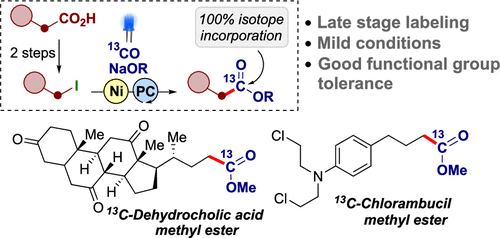 We have just published a nickel-mediated alkoxycarbonylation for complete carbon isotope replacement! The developed procedure allows for the direct late stage synthesis of carbon isotope labeled aliphatic esters. Check it out by clicking on the picture.