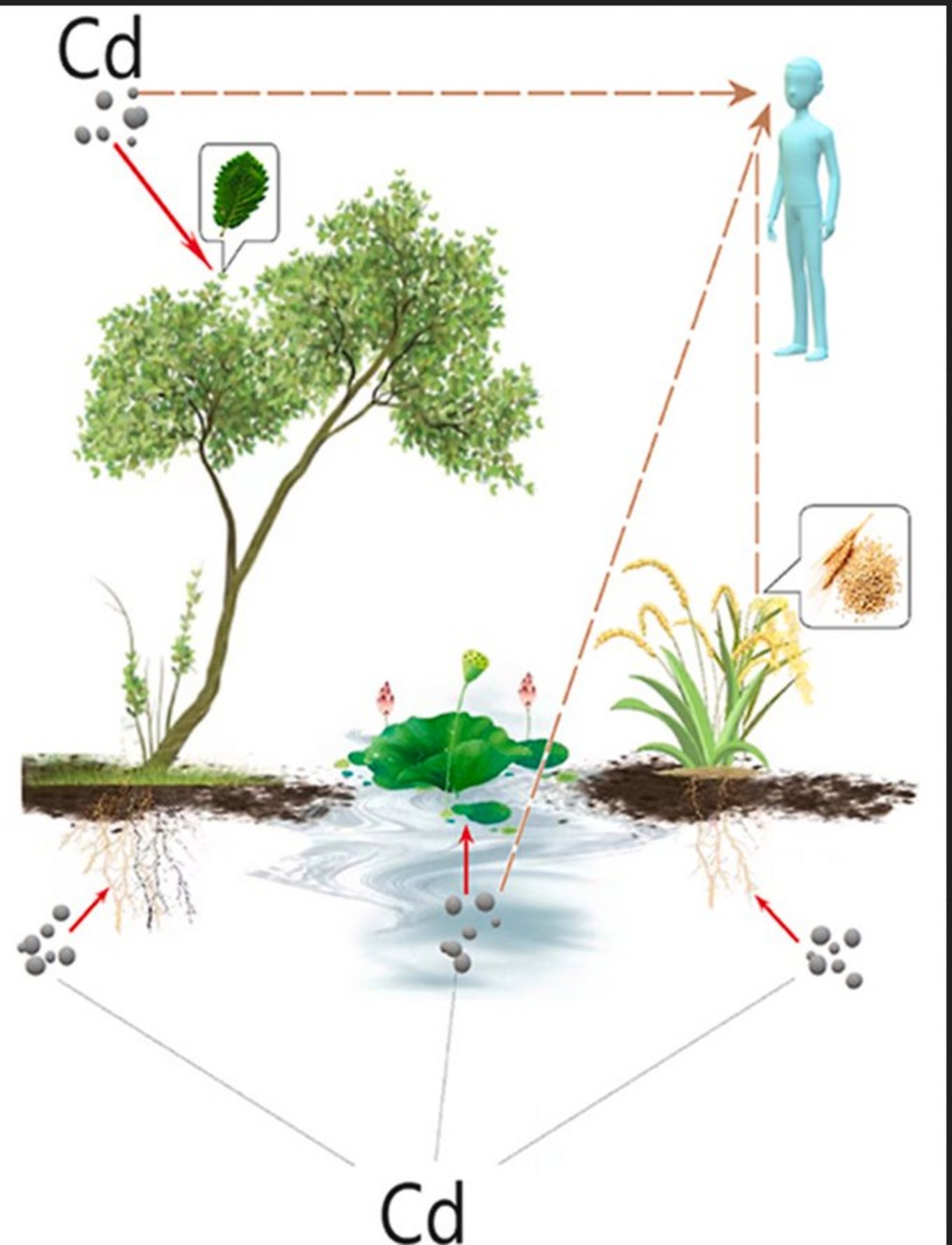 Potentially toxic elements (PTEs) pose a great threat to ecosystems and long-term exposure causes adverse effects to wildlife and humans. Cadmium induces a variety of diseases including cancer, kidney dysfunction, bone lesions, anemia and hypertension. Here we review the ability of plants to accumulate cadmium from soil, air and water under different environmental conditions, focusing on absorption mechanisms and factors affecting these. Cadmium possess various transport mechanisms and pathways roughly divided into symplast and apoplast pathway. Excessive cadmium concentrations in the environment affects soil properties, pH and microorganism composition and function and thereby plant uptake. At the same time, plants resist cadmium toxicity by antioxidant reaction. The differences in cadmium absorption capacity of plants need more exploration to determine whether it is beneficial for crop breeding or genetic modification. Identify whether plants have the potential to become hyperaccumulator and avoid excessive cadmium uptake by edible plants. The use of activators such as wood vinegar, GLDA (Glutamic acid diacetic acid), or the placement of earthworms and fungi can speed up phytoremediation of plants, thereby reducing uptake of crop varieties and reducing human exposure, thus accelerating food safety and the health of the planet.