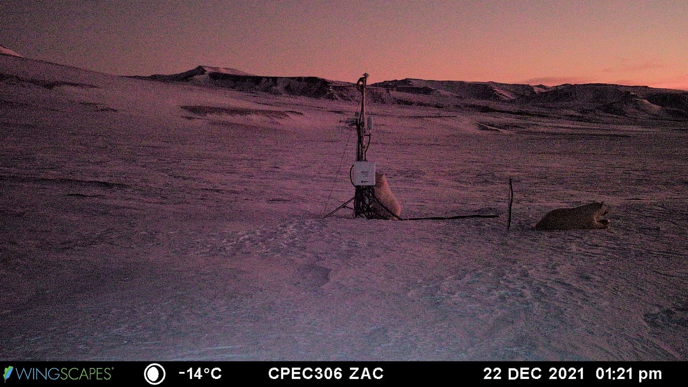 During winter we lost contact with a few instruments and after the inspection of the site and download of photos we discovered the problem. See photo attached. Seems like two Polar bears had a party and adjusted our instruments 22 December at 1:21 pm. Indeed, it is not always easy to prepare for everything – However, new instruments have been mounted and transmit data again. More information on the Greenland Integrated Observing System (GIOS) program can be found at the GIOS homepage.