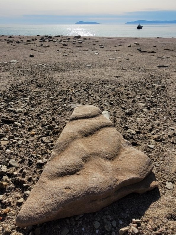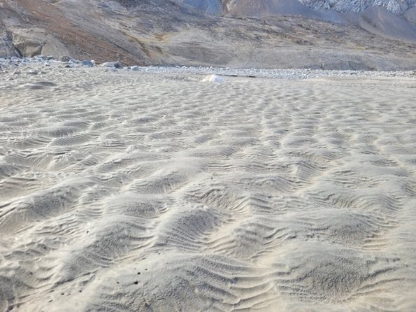 The water, rocks, and life hold stories. They tell us what has been present in the past, or how the environment is, or has been doing. For instance, the Tyroler delta was covered in ripples left by the water that has flown past. On a later trip to Fossil Bay, I think I found a fossil of such ripples from the past. As a biogeochemist, I study how chemical elements (nutrients, minerals, metals) flow through living systems (animals and plants, whose bodies mostly consist of carbon) and their physical environments––in my case: freshwaters and coasts. So, when I entered the Tyroler delta, I started looking for signs of life, starting with algae––which are a sort of aquatic plants without roots, that can be nutrition for other animals. As the streams originate directly from the glacier and contain few nutrients, and the landscape is very disturbed by the river, there is almost no vegetation around. I would expect very few algae in this environment, but there were still algae to be found in the riverbeds.