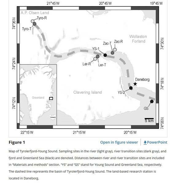 Sharp contrasts between freshwater and marine microbial enzymatic capabilities, community composition, and DOM pools in a NE Greenland fjord