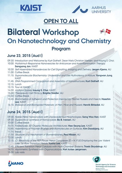 The bilateral workshop is organized by the Department of Chemistry at Korea Advanced Institute of Science and Technology (KAIST) and iNANO at Aarhus University.