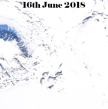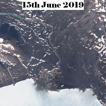 Figure 1 Comparison of mid-June snow extent 2018 (left) to 2019 (right) in Zackenberg https://twitter.com/GEM_Arctic/status/1140971866623893505.