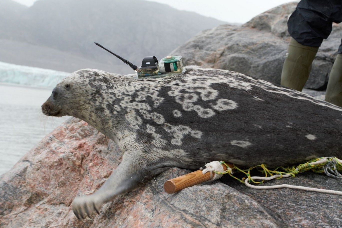 Over a number of years, the researchers together with local hunters captured seals in nets and mounted a small satellite transmitter on the seals’ backs. When the seals were up for air, the satellite transmitter sent a message about their location.