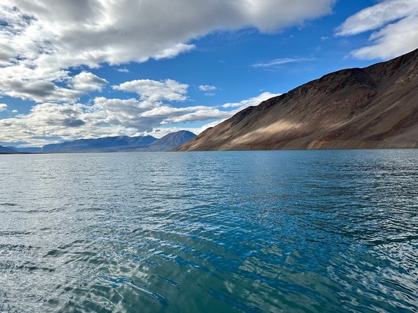 In order to study the impact of freshening (fresh water input) on marine carbon uptake we are making a transect along a gradient from the freshwater input of the Tyroler river out to the Greenland Sea. On our first sail deep into Tyroler fjord I could notice the visible gradient from the clear blue of marine-dominated water to the aquamarine Tyroler fjord water milky with glacial sediment. Rising from the water, the fjord is surrounded by colossal red-tinged mountains. The landscape is much more barren here than around Nuuk (my only other reference of Greenland) up here in the high Arctic. As we sailed by I couldn’t help but wonder if any human has ever set foot on this or that mountain up in this corner of the world?