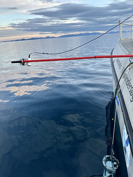 Work in the field has ramped up quickly. Seventy-two hours after getting the boat into the water we have already sampled two of the Greenland Ecosystem Monitoring (GEM- https://g-e-m.dk) Marine Basis stations, and done CTD casts from inner Tyroler fjord all the way out into the Greenland Sea. This means I have been out on the boat a fair amount, actually I’ve been on the boat more than I have been sleeping! It is best that we conduct CTD casts from all stations on the same day so we can examine the distribution of water masses before they change. I tagged along on both shifts of this long day to measure bulk CO2 fluxes. I have measured the pCO2 of the surface water as well as surface salinity and temperature while either Mikael or Mie conducted the CTD casts.