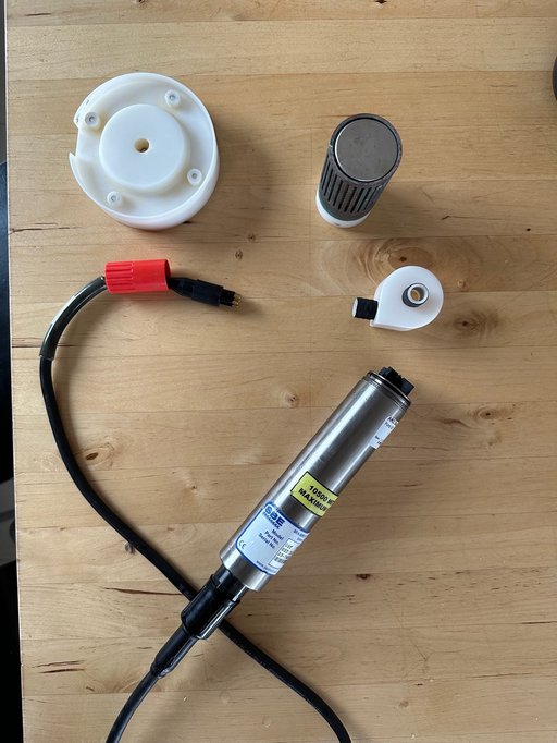The next morning, I found an old aquarium pump in one of the crates in the boat house. While I had planned on using the built-in Contros pump to mix water in my experiment, I was able to make a new system with a little bit of tubing, plastic fittings, and electrical tape, that still pumped water to the instrument head. This made it possible to at least get the second treatment of my experiment done. However, as I took out the rubber stopper on my water jug to start prepare for the next run, one of the glass tubes broke and a small piece lodged in the aquarium pump, breaking the motor. Now I was two pumps down. Without any other option I took apart the aquarium pump and put it back together again and after a while got it spinning.
