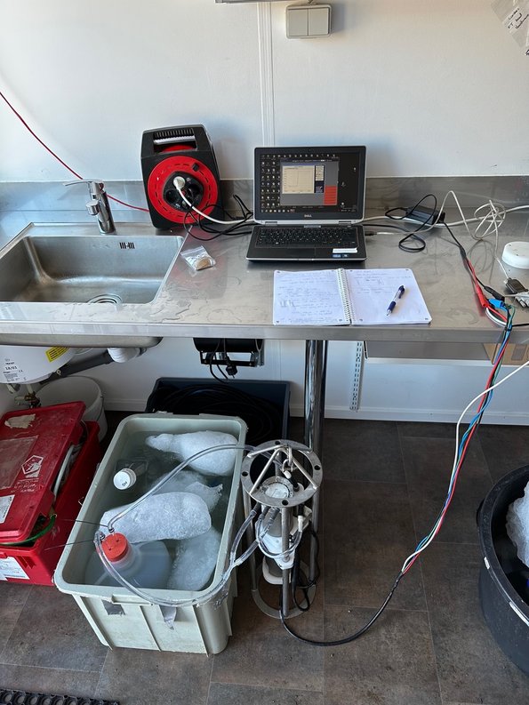After collecting the water, I needed to run the experiment. I started off with the first lab treatment. This at least ran as I had planned back in Aarhus. However, as soon as I was supposed to start the second treatment, the pump on the Contros HydroC stopped working. I tried taking it apart, rinsing out any particulates, cleaning the electrical outputs and inputs, but no matter what I did I couldn’t bring it back to life. This was a bit of a blow. I had spent a lot of time in Aarhus planning exactly how this system would fit together. However, up here in the Arctic, with little to no internet connection and no store around for 1000 km, remote science sometimes requires a bit of troubleshooting and working with what you have.