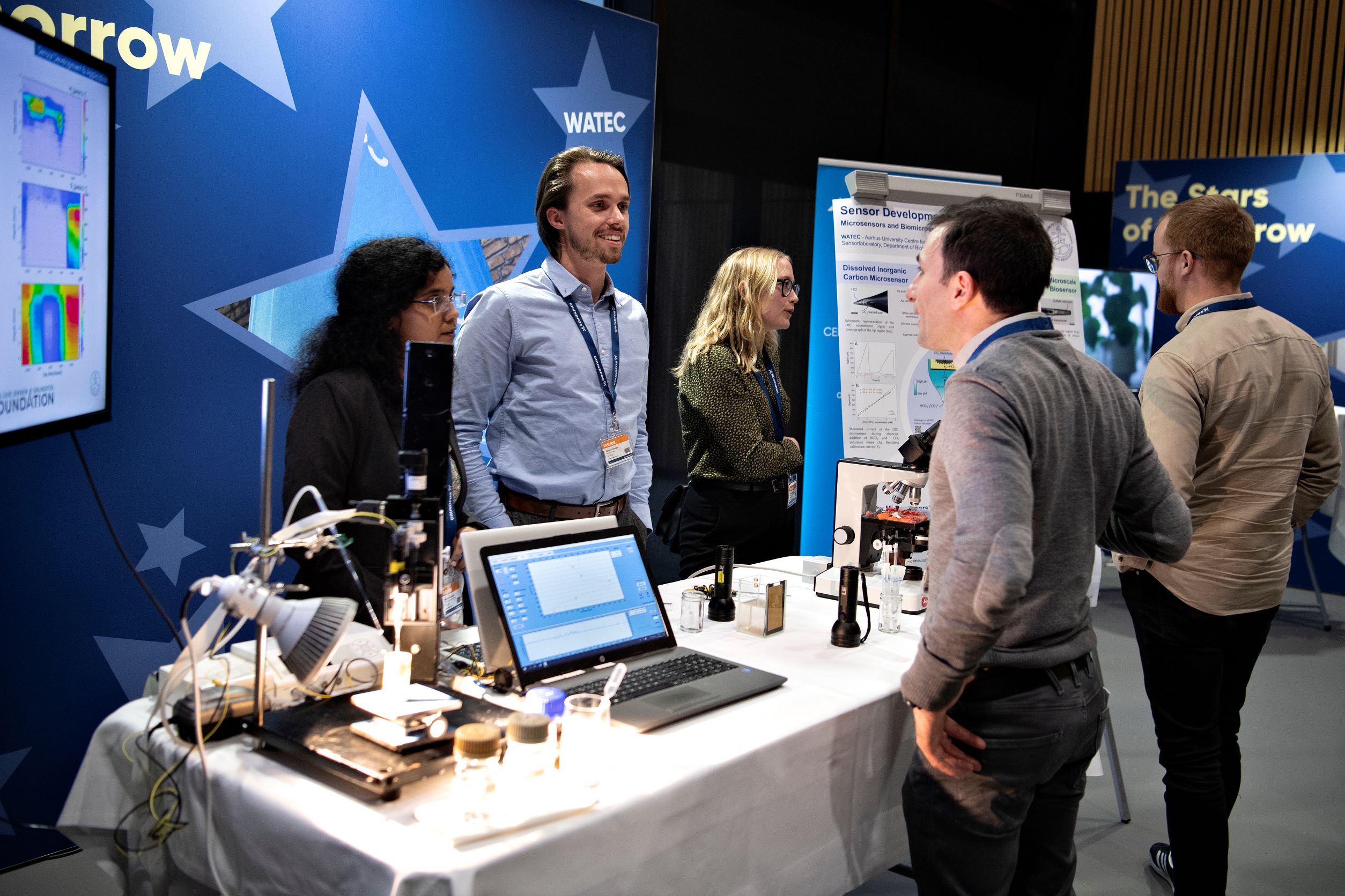 Several projects involving WATEC researchers were displayed at the expo. WATEC had a stand representing our sensor technology wastewater treatment groups where visitors could stop by to discuss the research projects and view microsensors in action. The HydroGeophysics Group showcased their tTEM technology where visitors could see the equipment and discuss the technology. “The sustainable lake stewardship project” also showcased their work on lake Ormstrup.