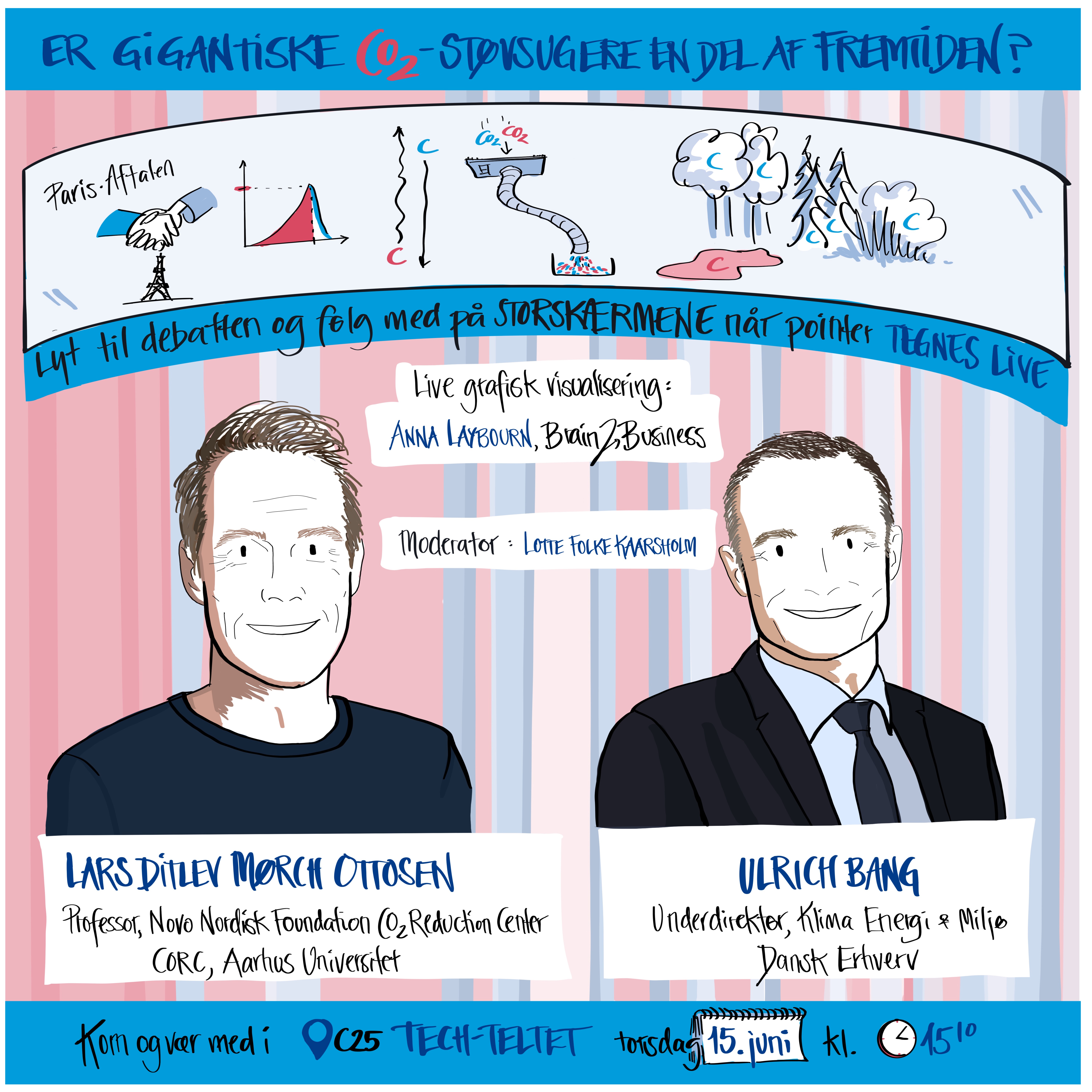 He was on stage at the Tech Tent at Engineer the Future together with Ulrich Bang, deputy director of the Danish Chamber of Commerce and responsible for climate, energy and the environment, and moderator Lotte Folke Kaarsholm, managing editor of the Opinion section of the Danish newspaper Politiken. Under the heading “Are giant CO2 vacuum cleaners a part of our future?” , the debate centred on the fact that we’ve exceeded our credit limit. Fixing this will require very drastic emission reductions. However, we’re well past the point of this being enough. We must therefore also look at other ways of reducing the huge amounts of CO2 we have emitted into the atmosphere, which is currently heating our planet at an alarming rate.