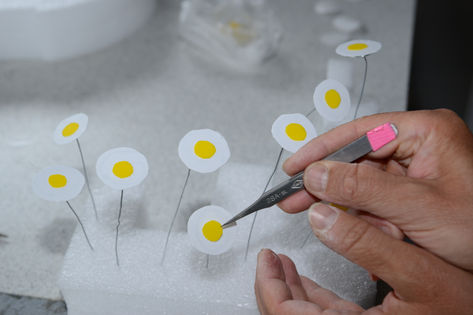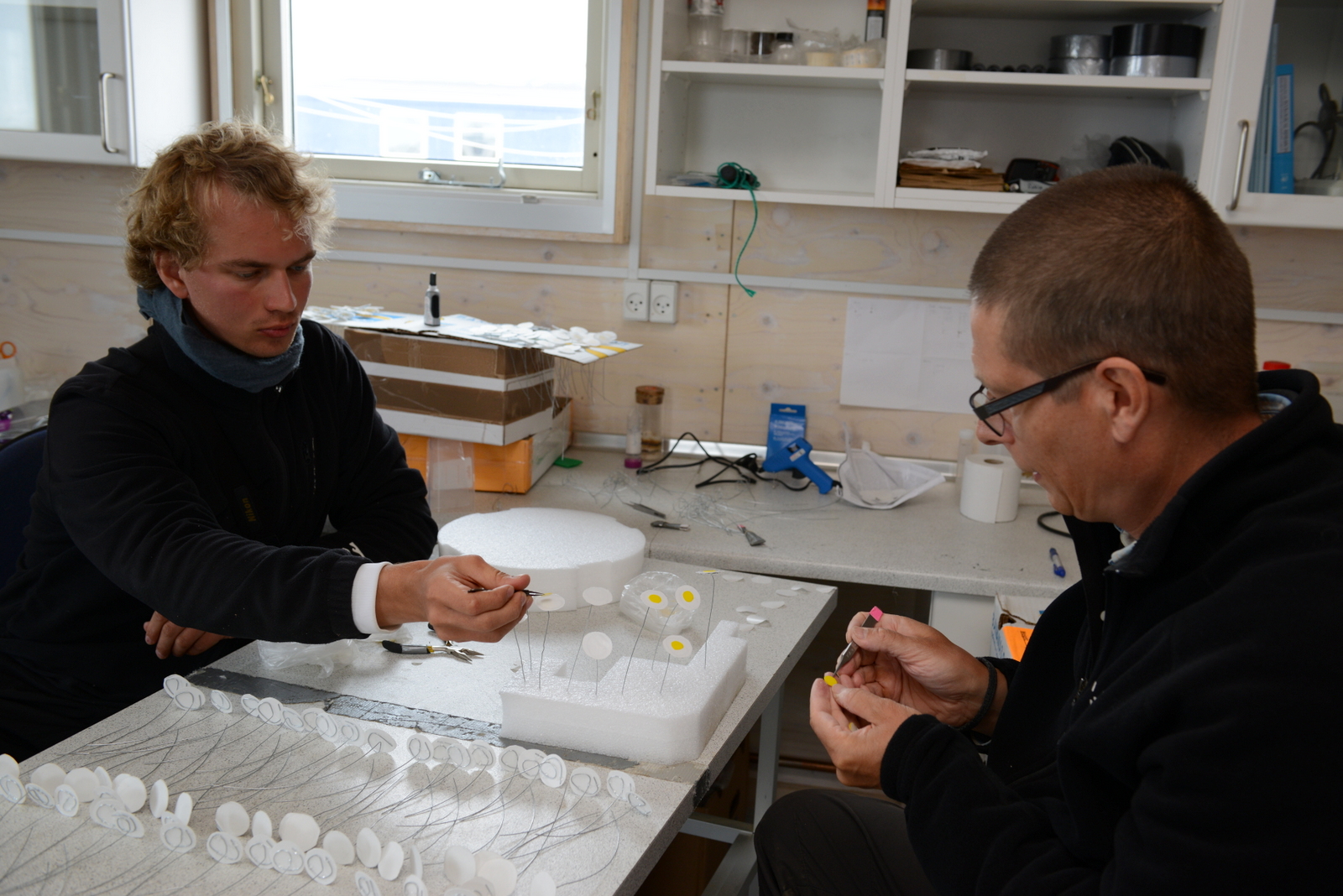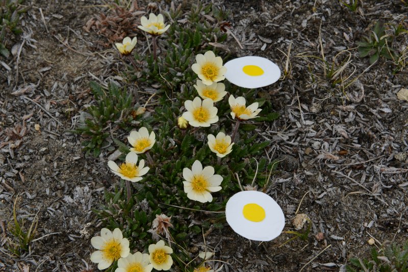 During the short summer season Tomas and Mikko will plant 1,800 artificial Avens flowers among the real flowers. The insects caught on the sticky cardboard will reveal the species pollinating Avens as well as the time of pollination during the short summer season.